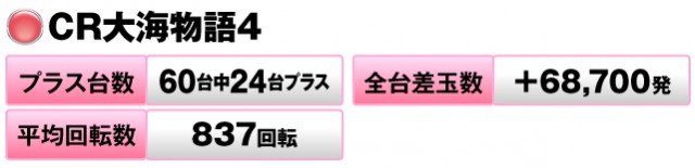 60台中24台がプラスで全台差玉数は+68,700発を記録した。
