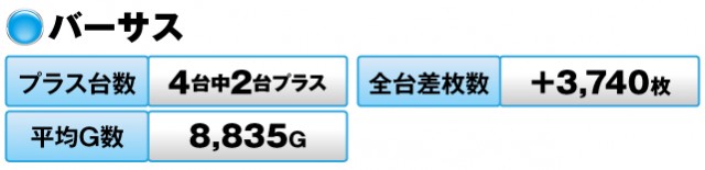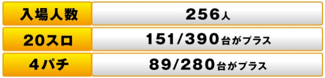 パチスロ全体では390台中151台がプラスで、トータルの差枚数は+2,730枚という結果だった。