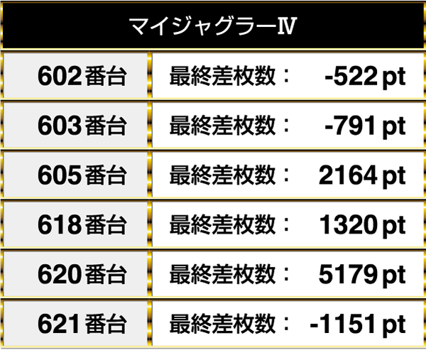 『マイジャグラーⅣ』にもプラスptが並び、1箇所は1320ptと5179pt!