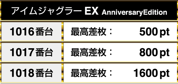 おなじジャグラーシリーズである『アイムジャグラーEX AnniversaryEdition』にも3台が固まってプラスptを記録する場所があった。