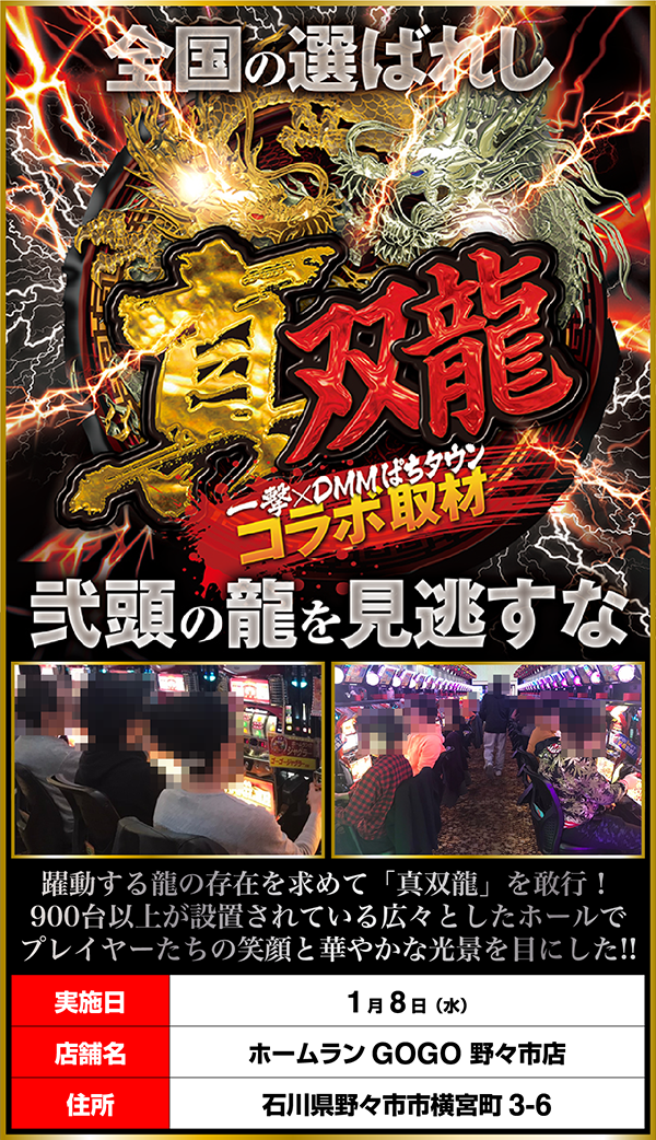 さまざまなスペックの機種が人気を集めていた「ホームランGOGO 野々市店」。退店するときまで、ステキなシーンをいくつも目にした「真双龍」であった。