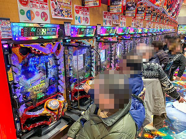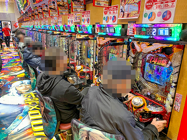 14時過ぎの4円パチンコでは「ぱちんこCR真・北斗無双」や「ぱちんこCR北斗の拳7 転生」、「新世紀エヴァンゲリオン 〜シト、新生〜」が好評の様子。プレイヤーの嬉しそうな表情を多数確認している。