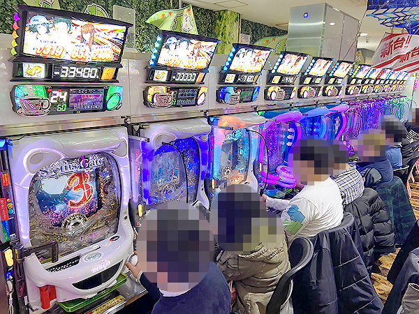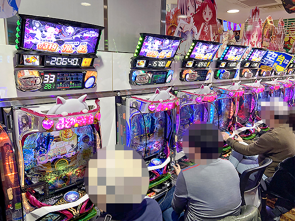 16時半過ぎの4.16円パチンコでは「ぱちんこ 劇場版 魔法少女まどか☆マギカ」や「新世紀エヴァンゲリオン 〜シト、新生〜」、「ぱちんこCR真・北斗無双」が盛況で、機種のポテンシャルをフルに活かすプレイヤーを複数確認している。