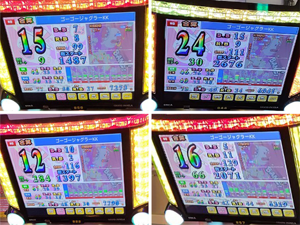 ・『ゴーゴージャグラー』は4台がボーナス合算確率1/120以上