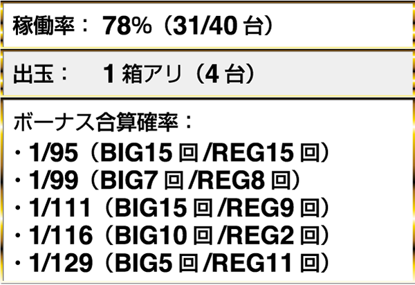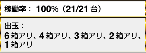 『沖ドキ!』や『押忍!サラリーマン番長』など、5機種で1箱以上の出玉を確認した。