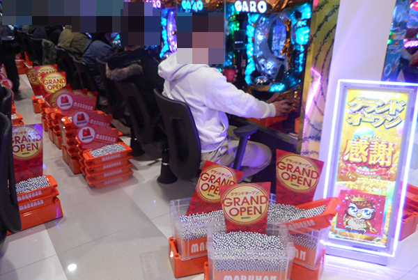 4円パチンコでは朝から支持を得ていた「CR牙狼 魔戒ノ花」が高稼動をキープ。前日の取材時と同様に、多数のプレイヤーが理想的な展開で機種の魅力を堪能しており、幸せなムードさえ感じられた。