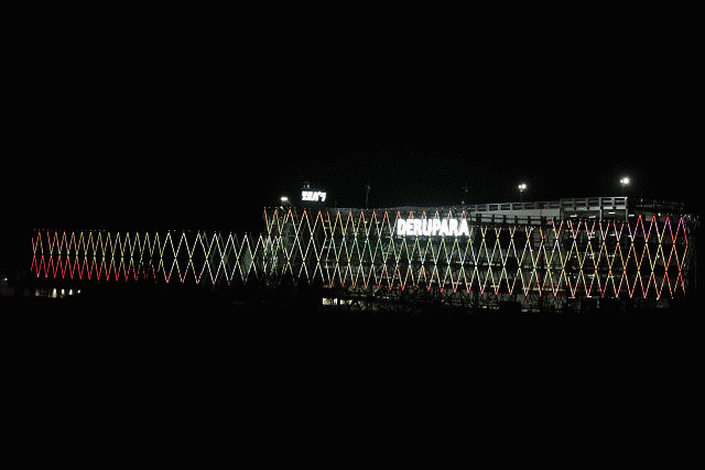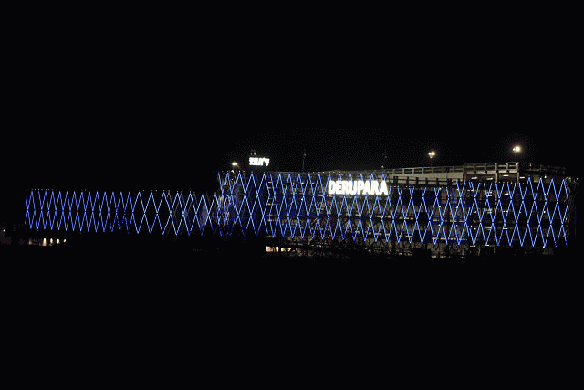 「デルパラ6あきる野店」は圧倒的巨大な体躯。その身を包むは、鮮やかにまばゆく魅せるLEDの衣。