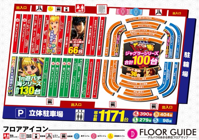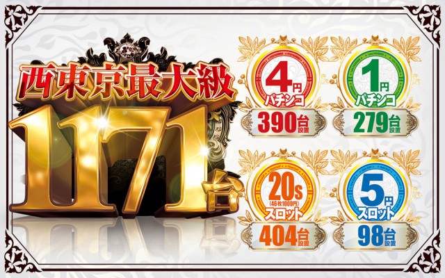 4円パチンコ390台、1円パチンコ279台と巨艦店ならではのBIGな数字
