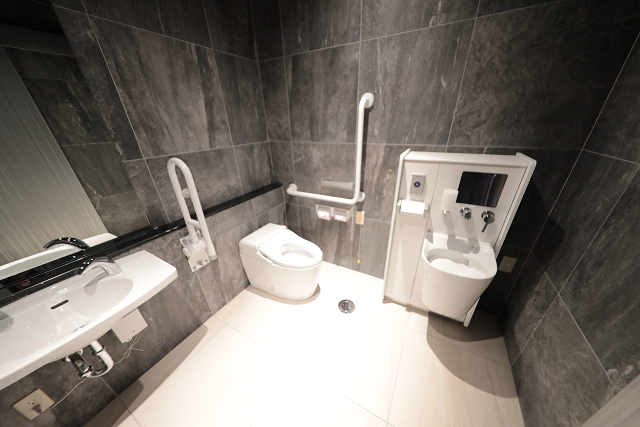 体の不自由なファン向けのトイレも、ユニバーサルデザインを取り入れて快適に利用可能