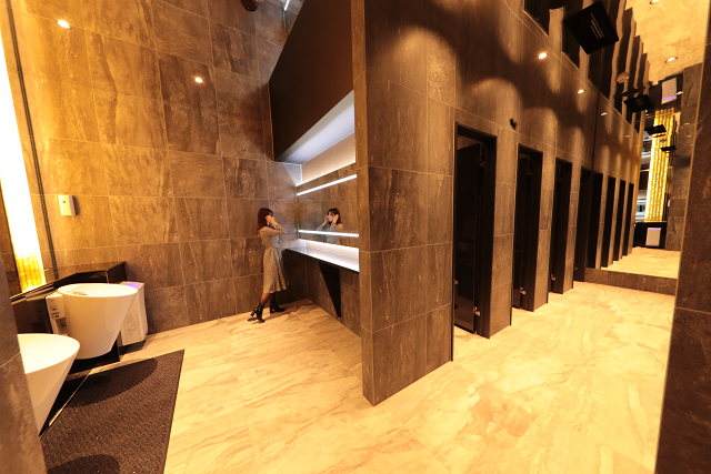 パウダースペースもハリウッドの女優が使用する鏡のよう。明るく照明がしつらえられており、メイク直しも快適そうだ。