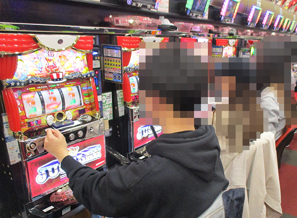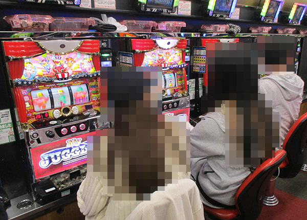 華やかなシーンだけでなく、小役カウンターを使用している姿も確認済み。小役を数えている場面からは、期待を持ったうえで来店していることがうかがえた。
