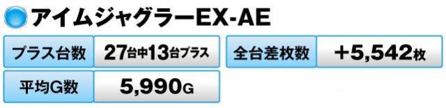 27台中13台がプラスで全台差枚数は+5,542枚だった。