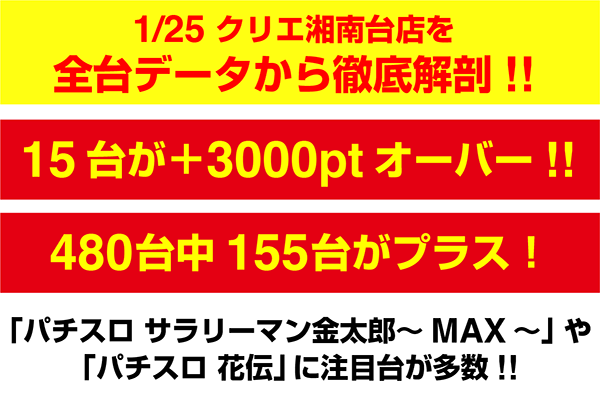 1月25日の「クリエ湘南台店」をシマごとに分析。