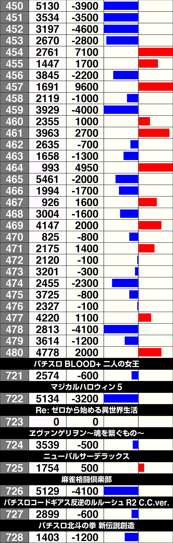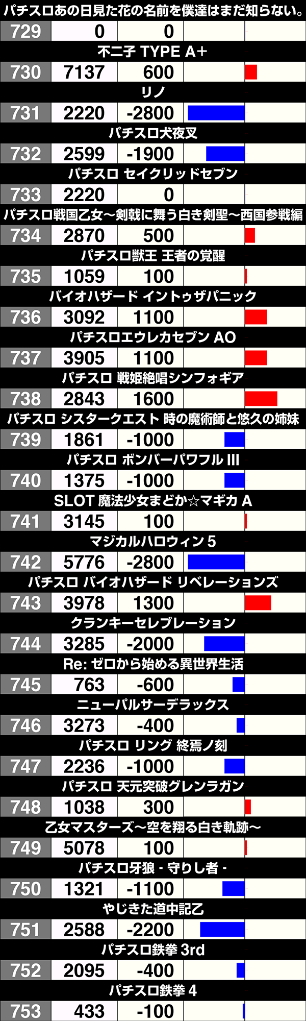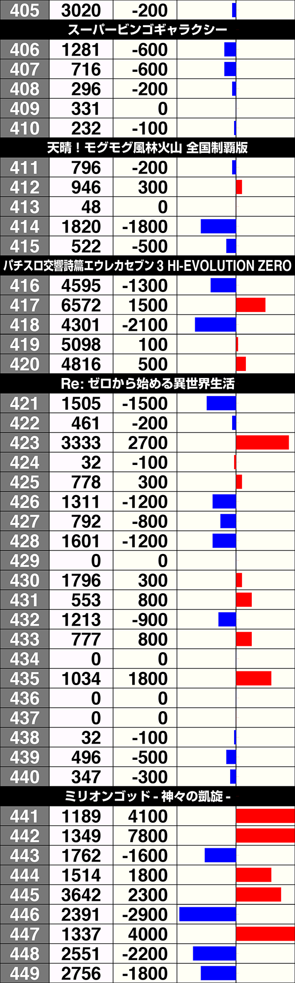 パチスロ全体で155台がプラスを記録し、そのうちの15台が3000ptオーバー。2台以上設置の機種は13機種がプラス台数割合が50%を上回った。