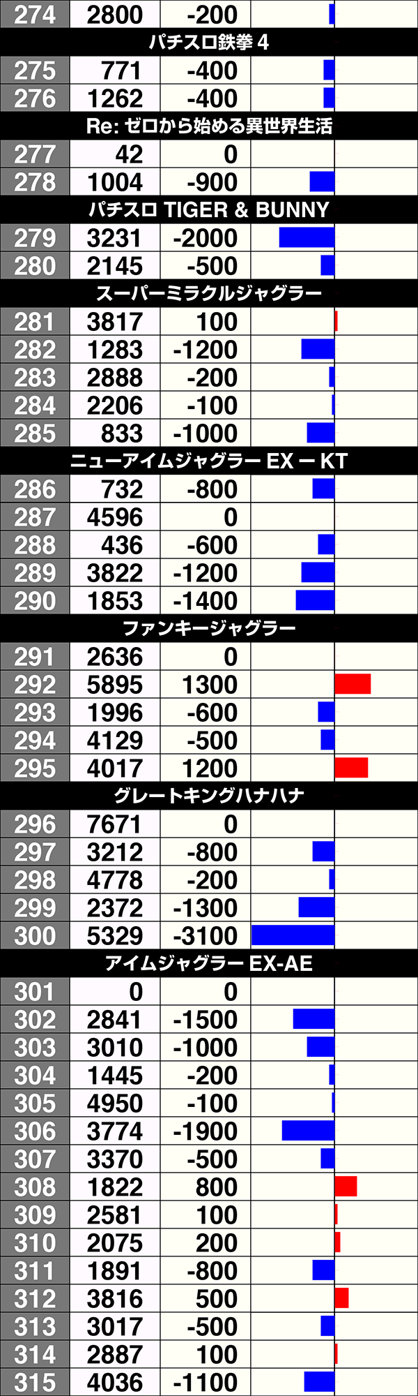 ジャグラーシリーズでも、『アイムジャグラーEX-AE』に3000ptを超える台があった。
