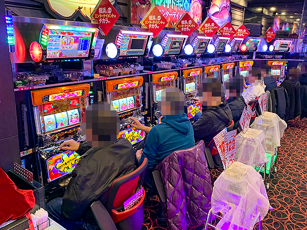店内には老若男女を問わずプレイヤーが集合。パチンコ・パチスロの各シマから活気が感じられた。