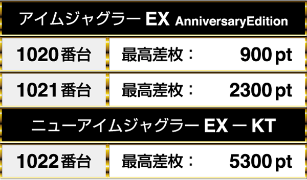 『アイムジャグラーEX AnniversaryEdition』には900pt、2300ptが並ぶ!