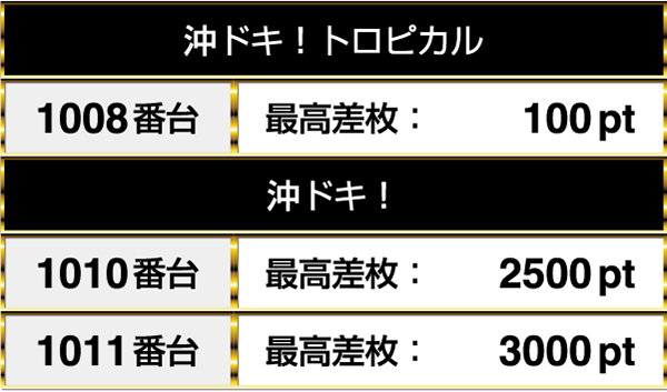 前回の降臨シリーズにおいて、プラスptが連なっていた『沖ドキ!』と『ニューパルサーSPⅡ』は今回もすべてが1000ptオーバー!!