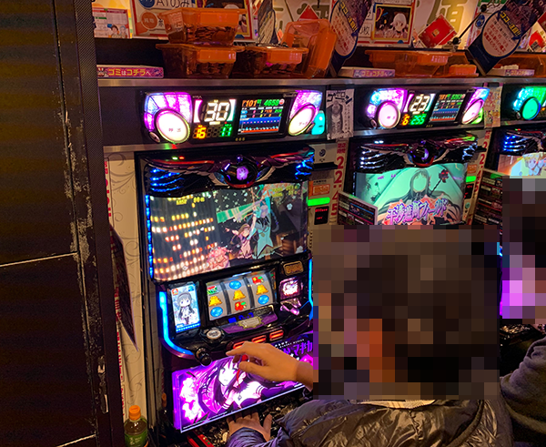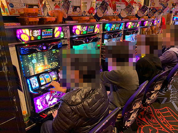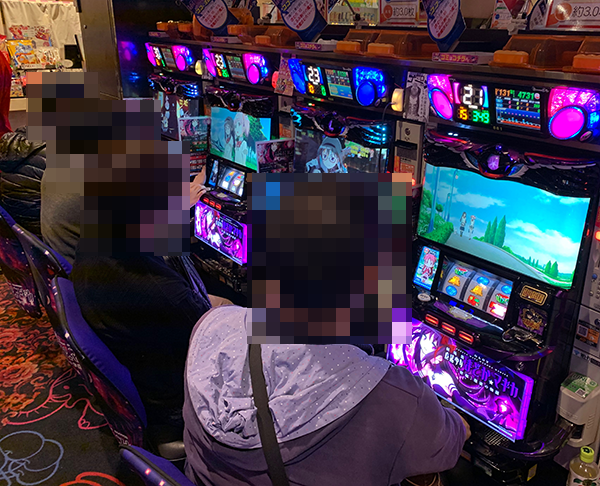 18時過ぎの店内をみわたすと、プレイヤーたちは遊技を満喫している様子であり、ホール全体が活況。なかでも、パチスロの稼働率がとくに高かった。