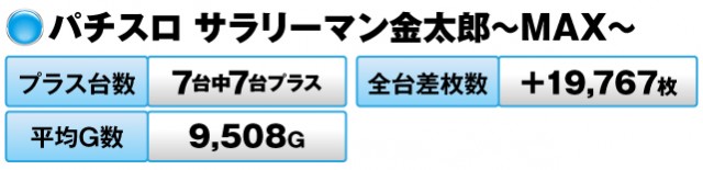 パチスロ全体では、420台中181台がプラスで、トータルの差枚数は+40,949枚にも達した。
