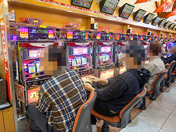 「押忍!番長3」や「パチスロ聖闘士星矢 海皇覚醒」、「ツインドラゴンハナハナ‐30」では機種性能を上手く発揮するプレイヤーを目撃。シマ内が微笑ましいムードに包まれていた。