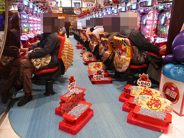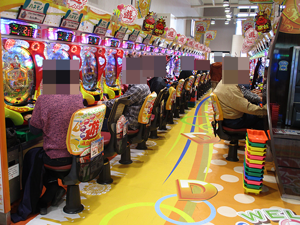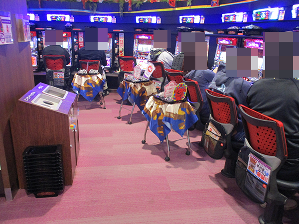 4円パチンコでは「CRスーパー海物語IN JAPAN」と「CR牙狼 魔戒ノ花」がもっとも大きな盛り上がりをみせていた。機種の魅力を堪能できているようで、笑顔をみせるプレイヤーも多い。