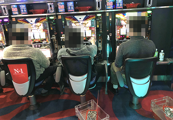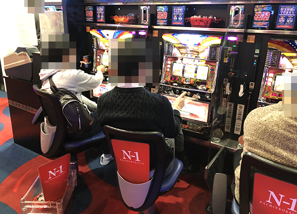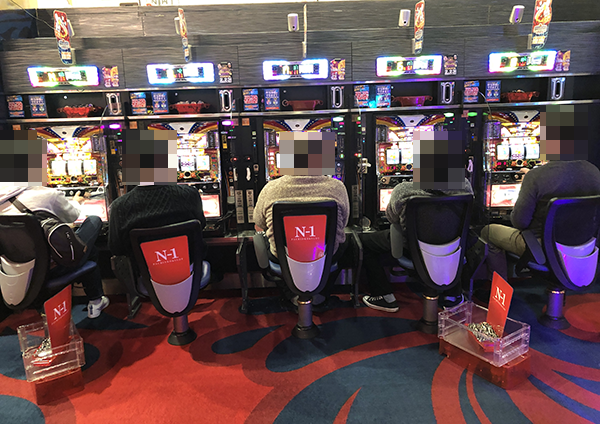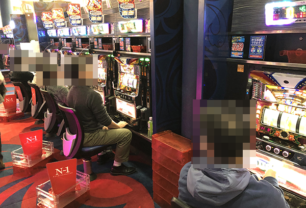 滞在時は空き台があったものの、華やかなムードのなかでプレイヤーたちが楽しそうにレバーを叩いていたことを覚えている。