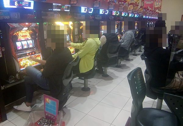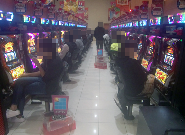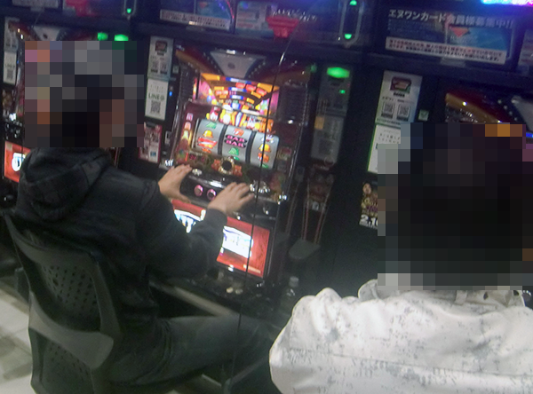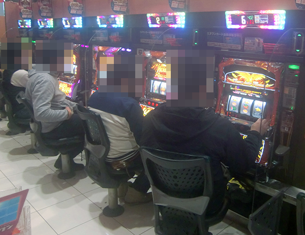 パチスロコーナーにおいてプレイヤーたちが華麗なパフォーマンスを披露!