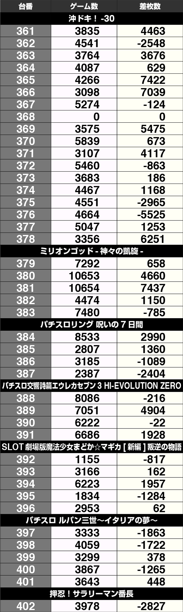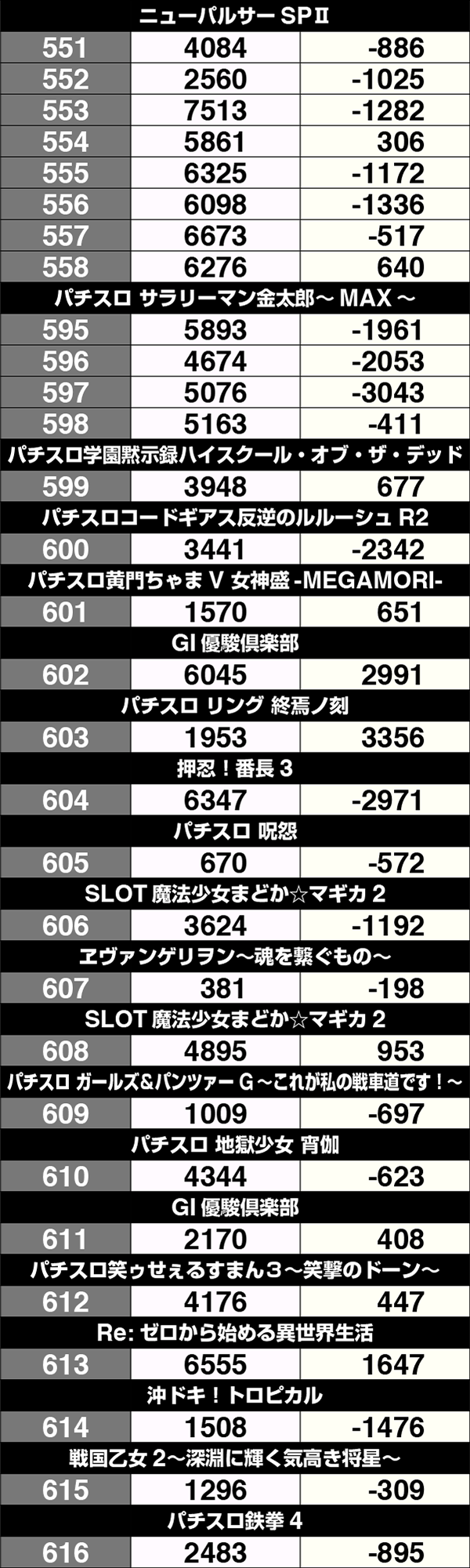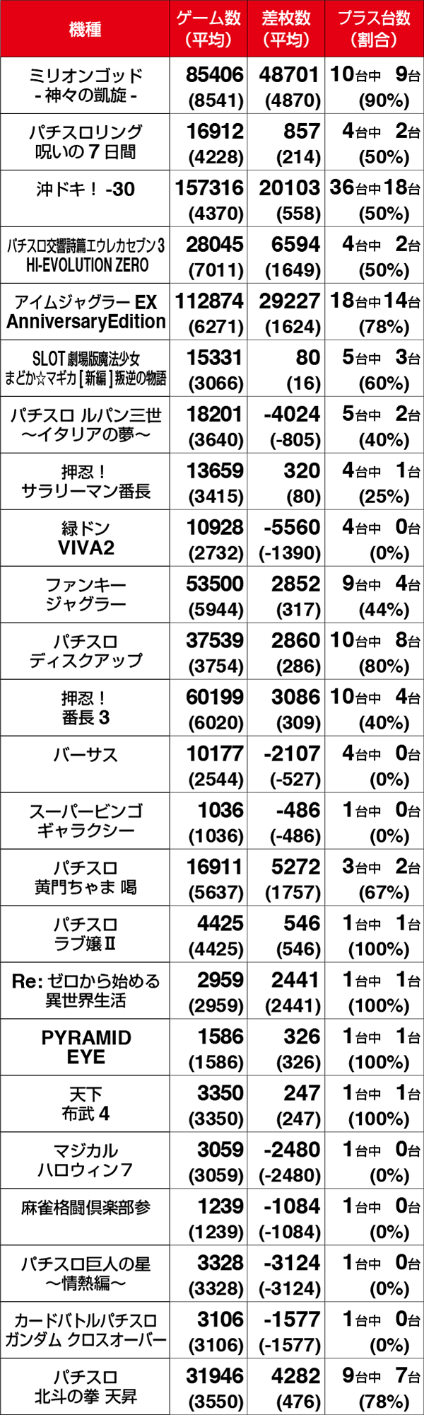 2台以上設置されている22機種のうち、半数を大きく超える16機種の差枚数がプラス。そのうちの3機種はトータル差枚数が20000ptを上回った。