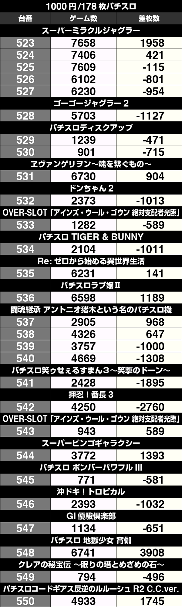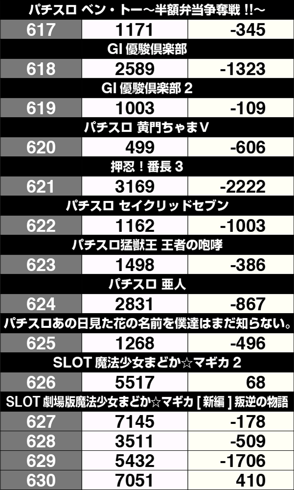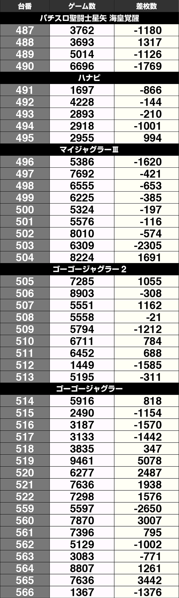 2台以上設置されている22機種のうち、半数を大きく超える16機種の差枚数がプラス。そのうちの3機種はトータル差枚数が20000ptを上回った。