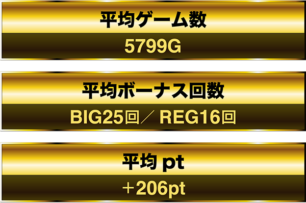 1日を通したデータでは、平均ゲーム数が5799G。平均ptはプラス206ptを記録した。