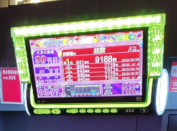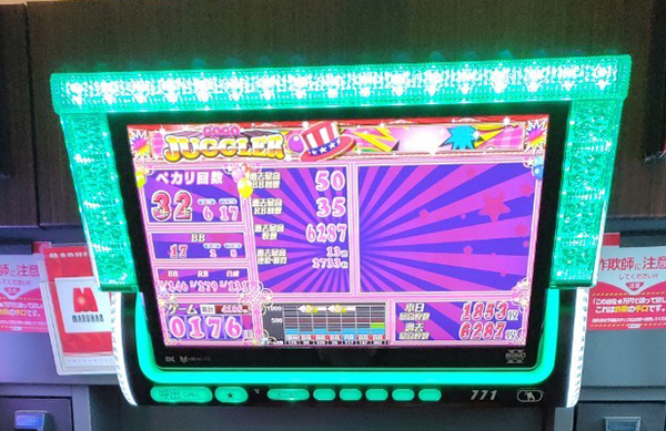 この日、もっともボーナス当選回数が多かったのは『ゴーゴージャグラー』の2台。
