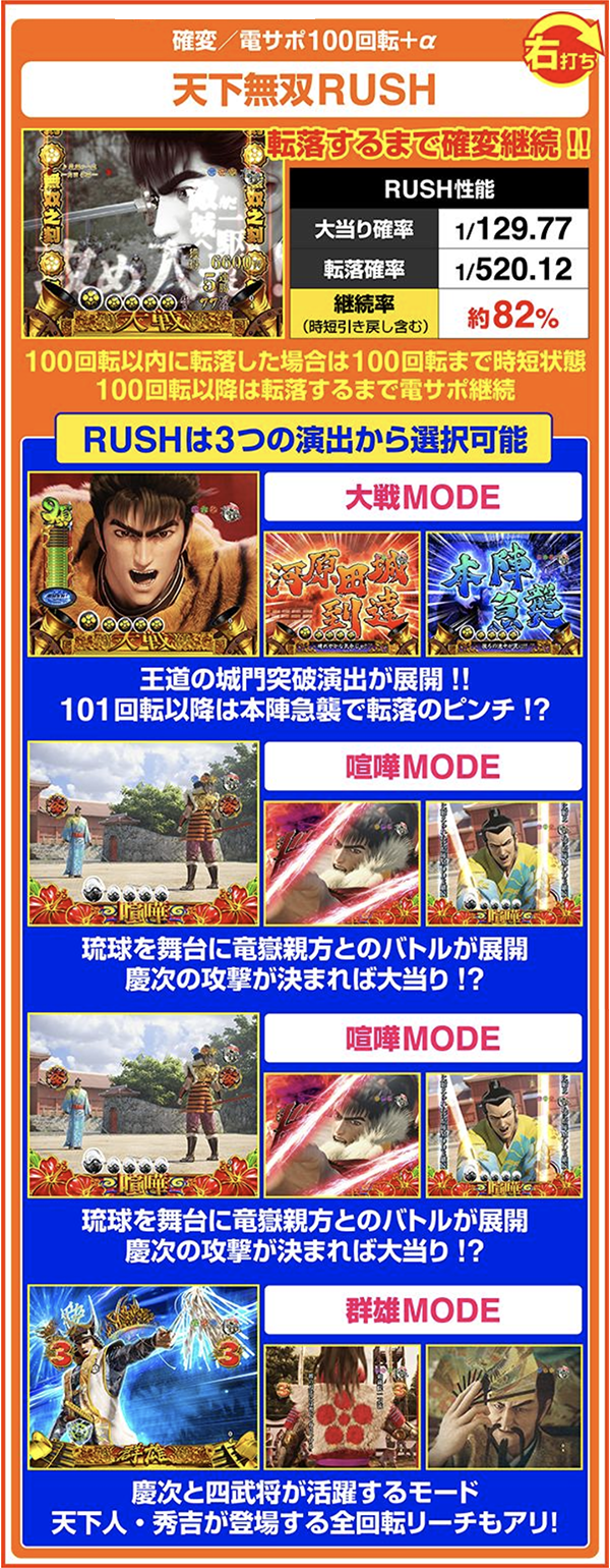 確変は転落タイプ(転落確率は約1/520)で、継続率は約82%。