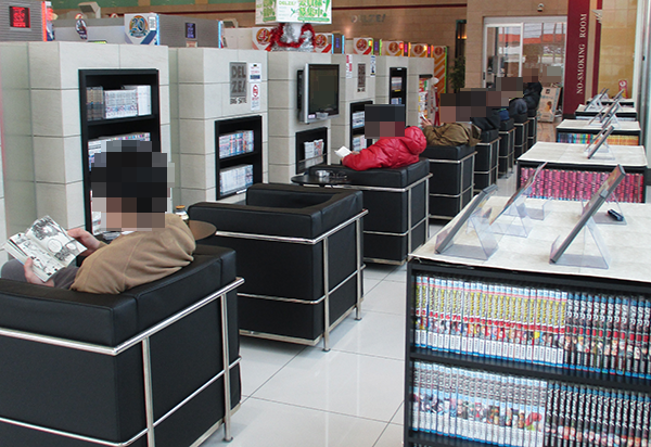 店内にはレストスペースがあり、ソファや漫画本などが用意されている。禁煙になっているスペースもあるため、自分にあった場所でくつろげそうだ。