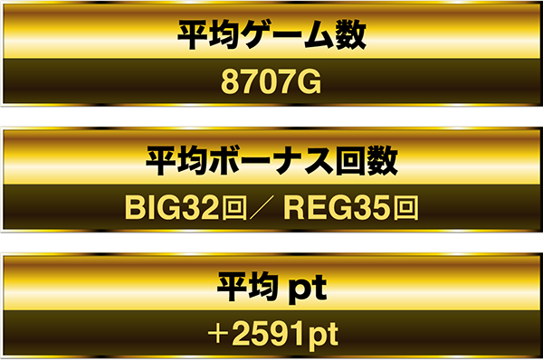 3台のボーナス合算確率をみると、1台が設定5の近似値で、2台は設定6の数値を上回っていた。