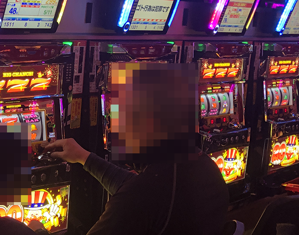 遊技をおこなっているプレイヤーたちは楽しそうであり、「アイムジャグラーEX AnniversaryEdition~プレミアムピンク~」はにぎわいに包まれていた。