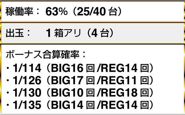 ・『ゴーゴージャグラー』の3台がボーナス合算確率1/130以上