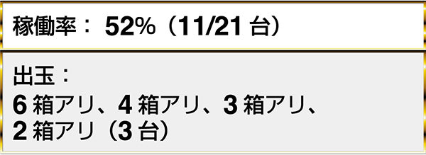 ・『ミリオンゴッド-神々の凱旋-』の6台に2箱以上の出玉アリ