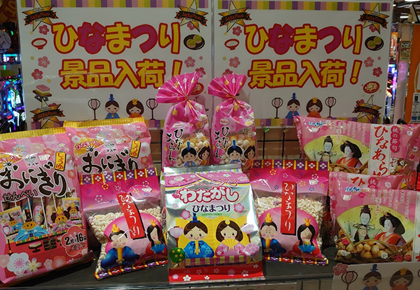 賞品コーナーも興味を持ったポイント。ひな祭りにピッタリなお菓子があったり、さまざまなカップ麺が並んでいたりと、どれを選ぼうかと迷ってしまうほどの充実したラインナップとなっていた。