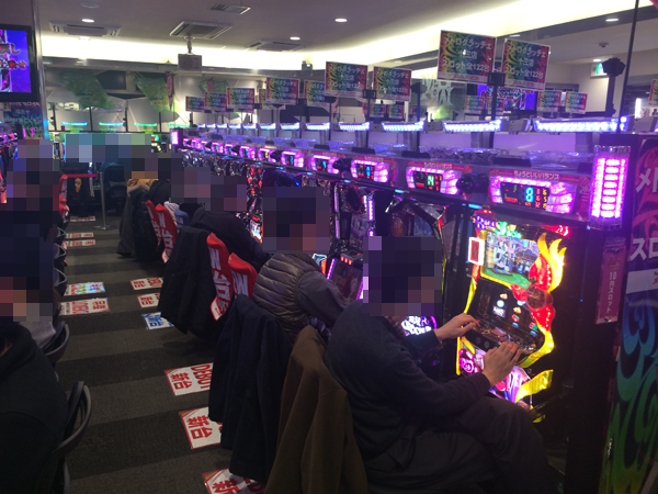 そのほかにも、新台の「スーパーブラックジャック2」をはじめ、「パチスロ ガールズ&パンツァー」や増台されていた「パチスロ鬼武者3 時空天翔」などさまざまな場所で活気のある光景を確認している。