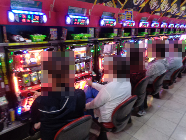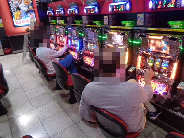 入店時に稼働していたのは6台中3台。イキイキとレバーを叩いている姿が目立ち、店内でひときわ明るいムードに包まれていた。