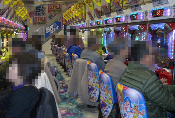 パチンココーナーでは1円パチンコが人気。なかでも海物語シリーズは空き台が見当たらないほどの盛況ぶりをみせていた。シマのなかには、機種の魅力を存分に堪能しているようなプレイヤーが多く、活気のある光景が広がっていた。