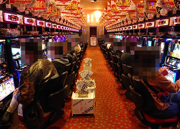 いくつもの場所に鮮やかな光景が広がっているなかでも、「SLOTバジリスク~甲賀忍法帖~絆2」で遊技をおこなっているプレイヤーの笑顔はひときわ明るい。