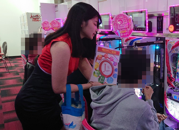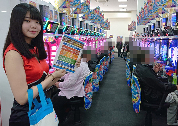 また、遊技中のプレイヤーに声をかけている七海ちゃんの姿もキャッチ。談笑しつつ、楽しそうに店内をまわっていた。