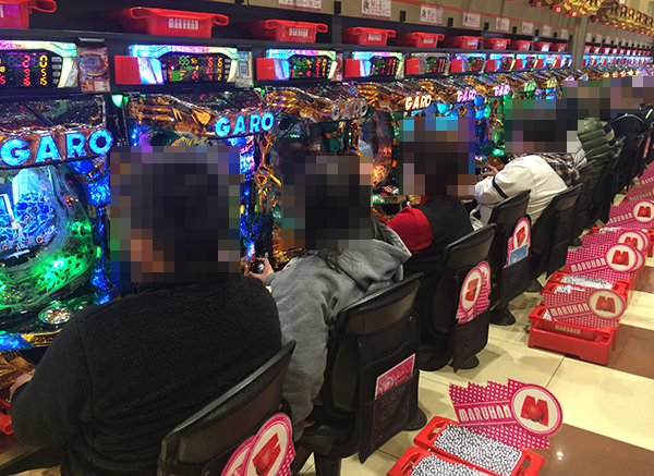 14時頃を過ぎた頃の4円パチンコでは「CR牙狼 魔戒ノ花」が大盛況。
