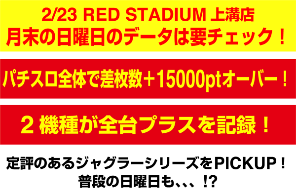 ジャグラーシリーズを中心に「RED STADIUM上溝店」のパチスロコーナーを分析。