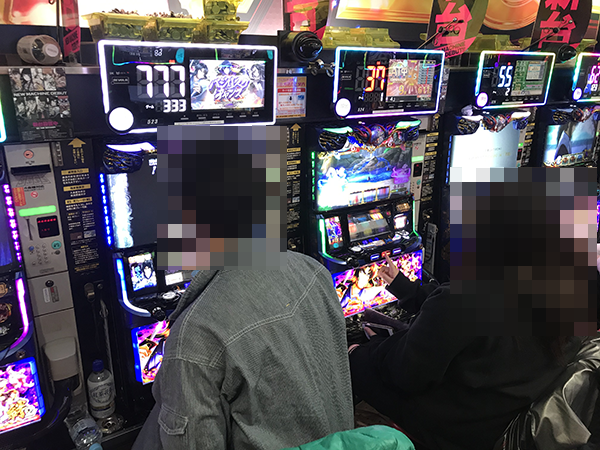 「SLOTバジリスク~甲賀忍法帖~絆2」にて、友人同士で談笑しているプレイヤーも確認。有意義な時間を共有し、さらに楽しく遊技をおこなえていたように思う。