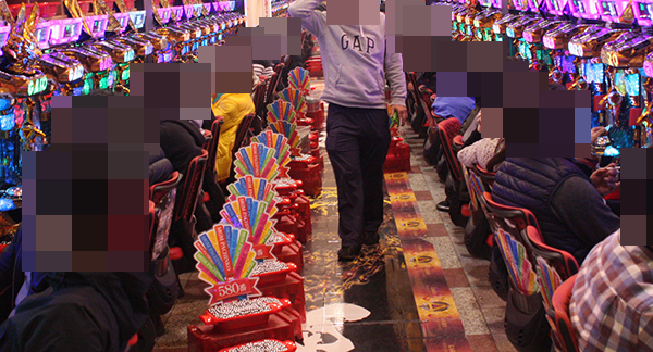 また、「ハナビ」やジャグラーシリーズといったボーナスタイプも盛況。多くのプレイヤーがパチスロの醍醐味ともいえるリーチ目や告知ランプを堪能していると感じられる光景が広がっていた。