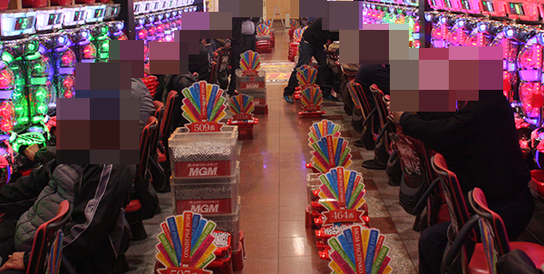 開店を迎えるとパチンコ・パチスロを問わず、たくさんの機種で遊技をはじめる姿をみることができた。