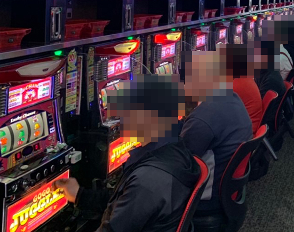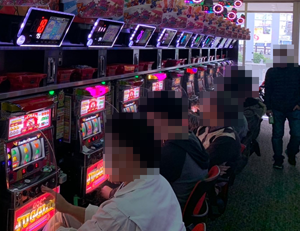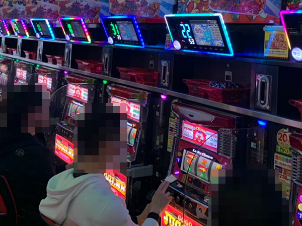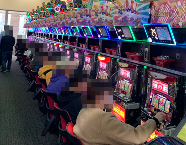 さまざまな機種が楽しまれているパチスロコーナーで、とくに盛況であったのがジャグラーシリーズ!